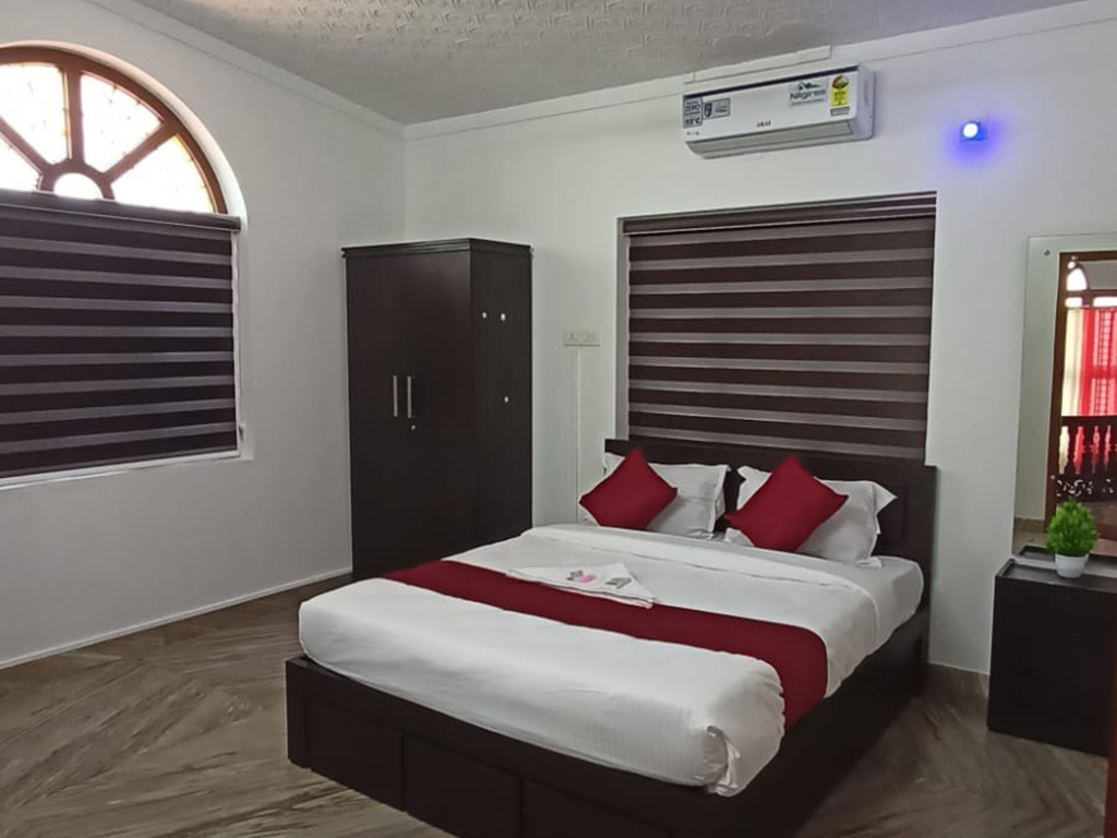 Calicut Residency offers an AC Deluxe Double Room, a thoughtfully designed space equipped with air conditioning, a flat-screen TV, electric kettle, desk, and a private bathroom. Guests also enjoy complimentary Wi-Fi, private parking, 24-hour front desk, and room service—ensuring both comfort and convenience.